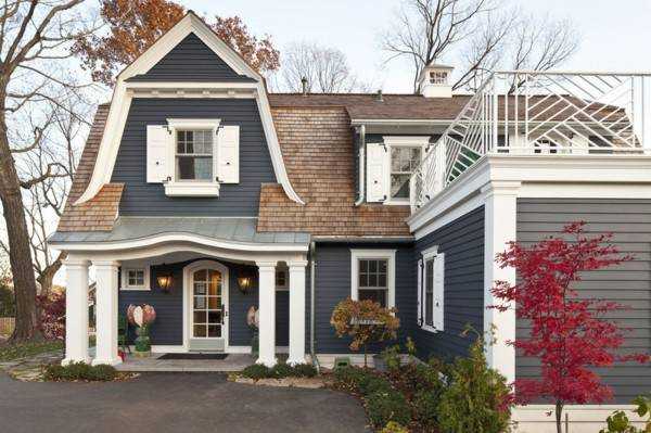 4. Контрастные (по отношению к стенам фасада) оттенки идеально подходят для покраски цоколя, козырька над крыльцом, эркеров и других выступающих частей фасада. Просто убедитесь, что они имеют достаточно интересные формы, которые стоит подчеркнуть.