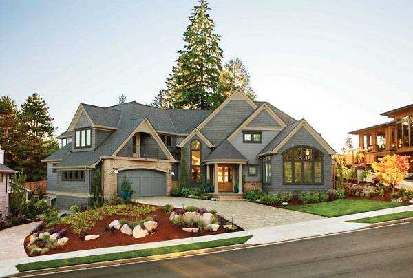 Каким бы универсальным не был оттенок шалфея, однако он не сравнится с серым. К слову сказать, серые тона сегодня пользуются спросом и во внутренней отделке частных домов. Ниже мы приводим несколько фото, где серый используется в качестве основного цвета фасада.