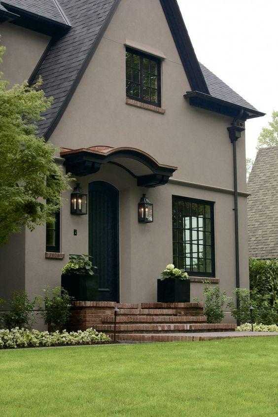 Серый и коричневый — универсальные землистые оттенки, которые гарантированно будут хорошо смотреться на любом фоне. Сочетание этих цветов подходит для фасада дома и крыши не менее удачно, нежели модный серо-коричневый цвет, который еще называют «тауп» (taupe). Фото ниже доказывают это.