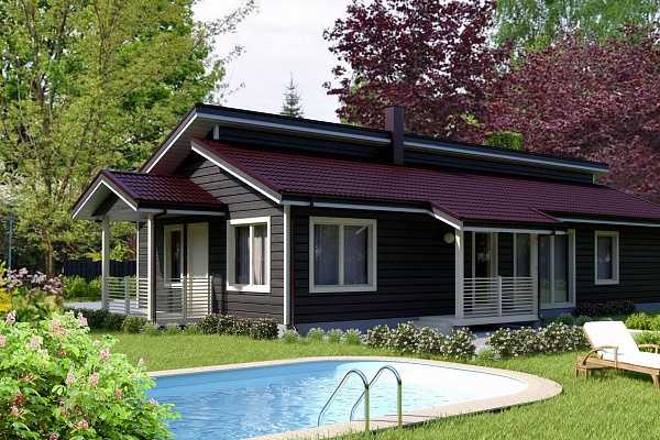 - Средний одноэтажный домик из клееного бруса, который выбирают много пользователей.