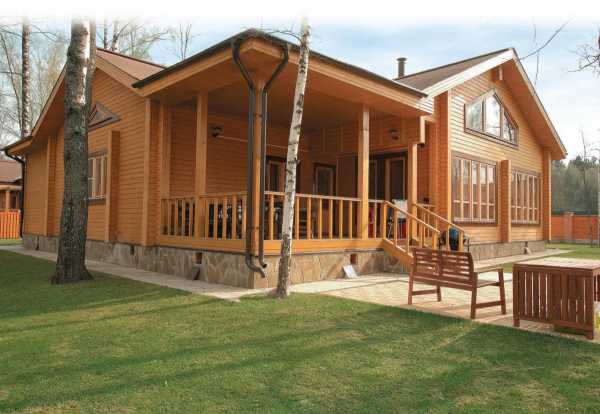 2. Дома из профилированного бруса – наиболее рациональное решение, когда постройка имеет прекрасный натуральный эстетический вид, не требующий дооформления отделочным покровом. Такие постройки смотрятся красиво, современно и практично. Главный плюс материала – его экологичность и способность «дышать». Недостатком можно назвать особые требования к влажности, несоблюдение которых приводит к появлению трещин.