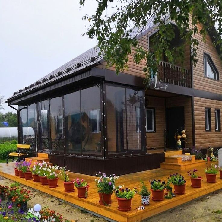 В любом случае дизайн будущей веранды напрямую зависит от предпочтений хозяев и размеров террасы. Добавит оригинальности веранды наличие клумбы.