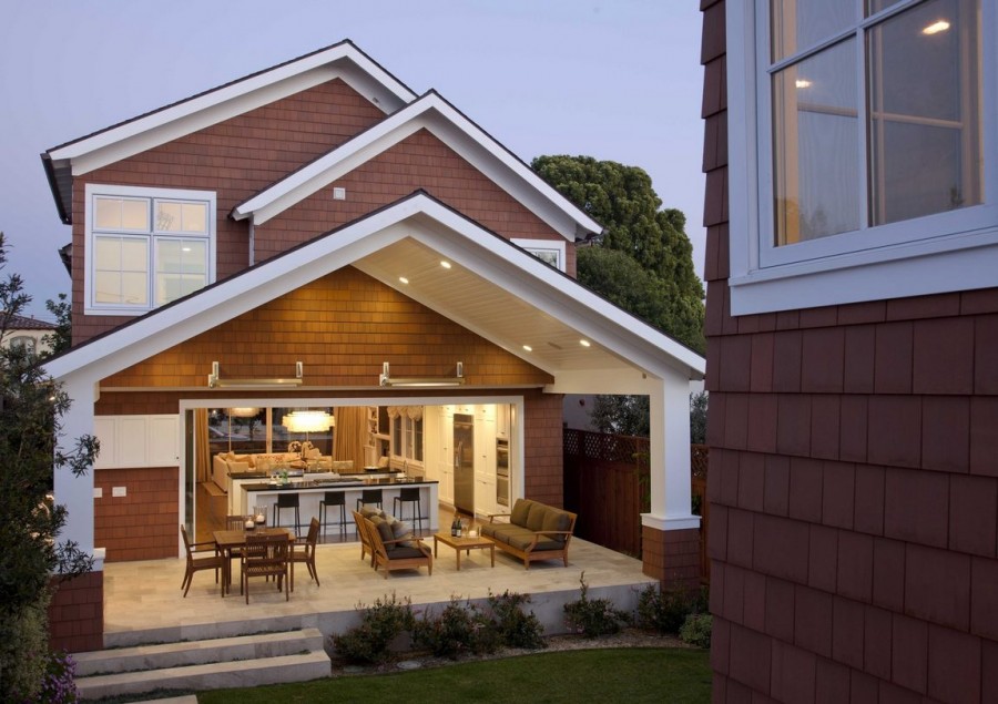 Если дизайн веранды продуман грамотно, то она сможет превратиться в практичную комнату для проживания, а самое главное – для отдыха. Большие окна и раздвижные двери смогут максимально приблизить людей к природе, которые находятся в этом помещении. Можно соорудить камин, поставить удобную мебель.