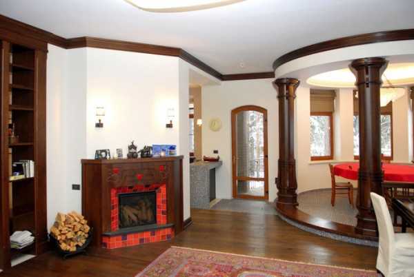 Красивый загородный дом или коттедж трудно представить без красивого камина. Мягкий ковер либо имитация натуральной шкуры подходят для создания романтической атмосферы в гостиной. В такой гостиной холодными зимними вечерами будет собираться вся семья. Изысканный вид имеет зона гостиной, оформленная натуральным либо искусственным камнем. Для создания единого стиля внутри загородного дома, для декорирования стен применяют обои, клинкерную плитку, фактурную штукатурку.