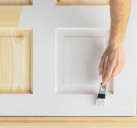 наносится финишное покрытие, состоящее из слоя грунтовки по дереву и нескольких слоев краски, с временным интервалом, гарантирующим полное высыхание каждого предыдущего слоя.