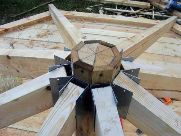 На заметку! Для цилиндрической крыши подойдут любые варианты стропил, главное – правильно их скрепить. Все они должны сходиться в одной точке.
