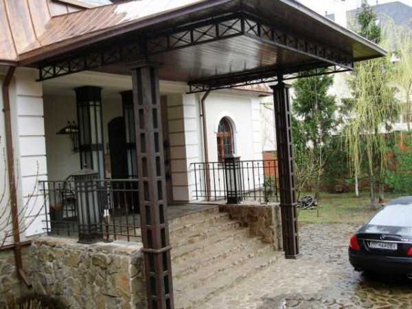 Наиболее долговечны каркасы козырьков над крыльцом, изготовленные из металла. При этом кровельный материал может быть любым.