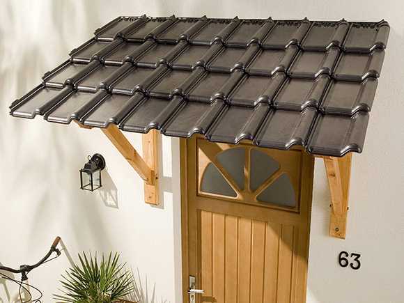 - другая функция козырька из этого материала заключается в том, что он обеспечивает защиту входной двери от солнца и дождя. Установив его перед своим домом, внутри всегда будет прохладно и сухо.