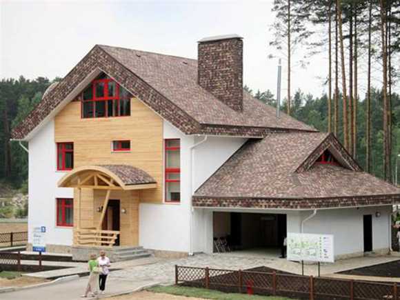 И при этом они не кажутся чужеродными. Только вот использование его с деревянными конструкциями каркаса требует осторожности – нужно предусматривать возможность бо?льших зазоров в местах крепления, чтобы дерево не порвало пластик из-за изменения своей формы и размеров при намокании-высыхании. Крепеж при этом нужно использовать с металлическими и полиуретановыми шайбами большого диаметра.