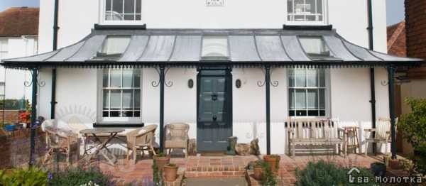 Крыльцо будет иметь незавершенный вид при отсутствии козырька. Оформить его можно из различных строительных материалов, благо предоставляемый выбор достаточно широк. В завершение выполняются облицовочные работы.