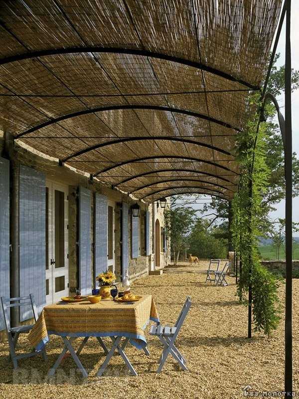 Красиво выглядит полукруглое крыльцо из металла, покрытое прочным стеклом. Под таким навесом вы всегда сможете понежиться под солнцем.