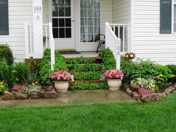 Не только декор крыльца, но и ландшафтный дизайн участка, ведущего к нему, имеет значение для формирования первого впечатления о внешнем виде частного здания. Жильцам и их гостям гораздо приятнее и комфортнее ступать по аккуратно выложенной из каменных или бетонных плит дорожке, оформленной с помощью гравия или гальки, любоваться зеленью декоративных растений, посаженных в землю или садовые кадки и горшки.