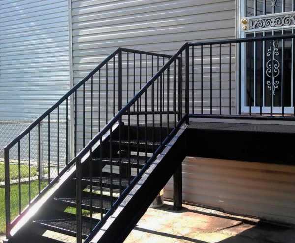 Ограждения в виде легких металлических перил придают крыльцу законченный вид и создают для жильцов ощущение надежности и безопасности: