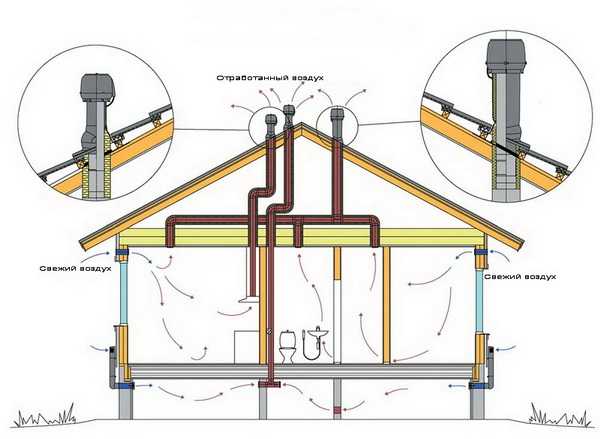 Важно! Способы и места установки вентиляционных каналов могут быть разными, но чаще всего принято выводить их на крышу.