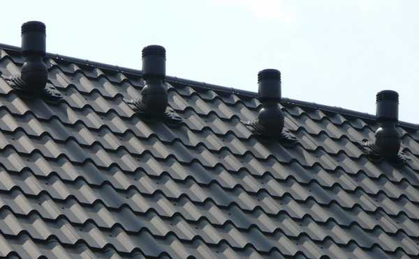 - Если крыша черепичная, то применяются специальные приспособления с вентиляционными отверстиями.