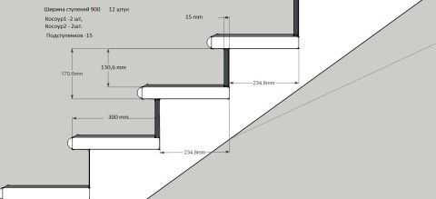 У тетивы, представляющей собой толстую доску, устанавливаемую на ребро, имеются потайные пазы. Они находятся на боковой поверхности, и в точности соответствуют размерам вертикальных и горизонтальных контуров проступей.