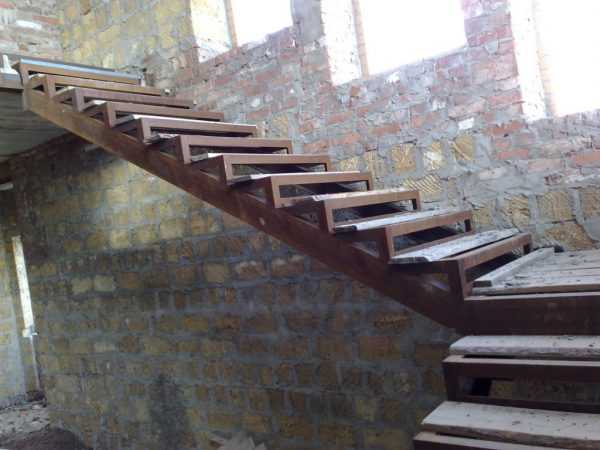 - Конструкция с шириной марша не более 1 м и ступенями толщиной в 6 см. В качестве несущего элемента здесь выступает только стена с внешней стороны конструкции, а также стяжка ступенек больцами с внутренней стороны. Если предполагается устройство перил, то они должны быть монтированы непосредственно на лестницу.