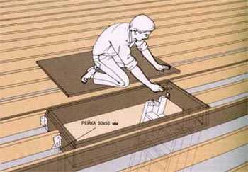 - Делаете в потолочном перекрытии люк. Его длина и ширина должны быть примерно на 6–8 мм больше аналогичных параметров изготавливаемого сооружения.