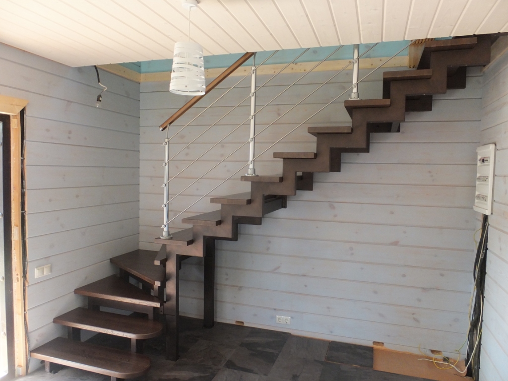 Металлические лестницы хороши тем, что у них нет люфтовых колебаний, они не требуют соблюдения температурного режима. Особенно это важно для домов не эксплуатируемых в зимнее время. Они не требуют дополнительного ремонта долгие годы, а вероятнее всего, и совсем не потребуют.