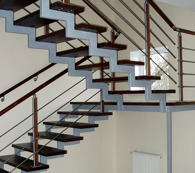 Представляет собой несущую конструкцию, на которой с определенным шагом предусмотрены полочки для ступеней. Такие каркасы, в свою очередь, классифицируются по месту расположения косоура: