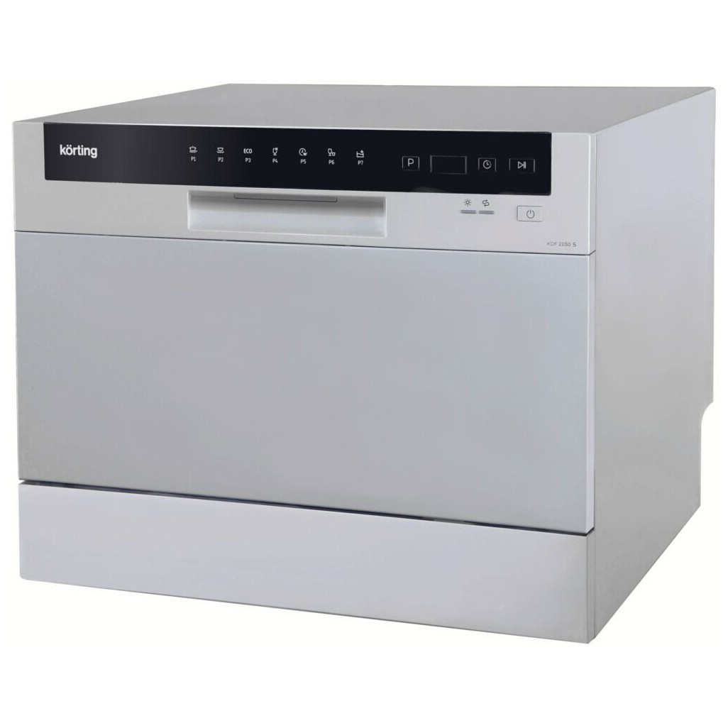 Модель занимает достойное место в нашем топ-10. Компактная посудомоечная машина Korting KDF 2050 W может спокойно разместиться на вашем кухонном столе и привести в порядок 6 комплектов посуды. Управлять устройством легко при помощи электронных программ, отображающихся на экране. 6 программ и 6 температурных режимов позволяют проводить экономичную быструю мойку.