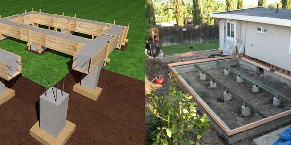Отличительная особенность такого типа фундамента – это установка столбов по периметру здания, в углах, местах пересечения стен и другими участками повышенной нагрузки. Для обеспечения слаженности конструкции и повышения свойств устойчивости такого типа оснований, а также для предотвращения опрокидывания и возможности смещения, между столбами такого фундамента выполняют установку ростверка (армированной перемычки). К ней не привязываются пристройки типа веранды, крыльца или террасы, для которых должен возводиться отдельный фундамент во избежание увеличения нагрузки и осадки основного фундамента.