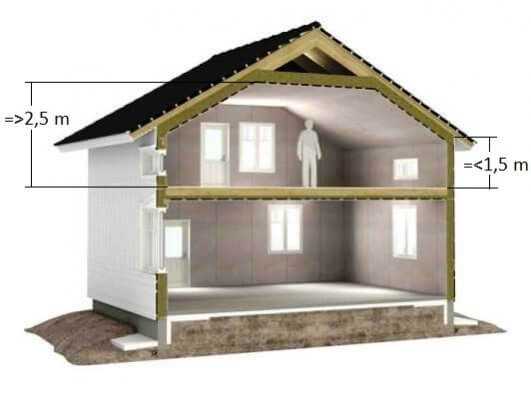 Это определение мансардного этажа из СНиП. Санитарные нормы говорят о том, что высота жилых помещений от пола до потолка должна быть не менее 2,5 метров. В каждом жилом помещении мансарды, высота потолка не менее 2,5 метра должна занимать не менее 50% площади помещения.
