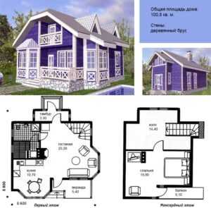 План деревянного дома с верандой и мансардным этажом