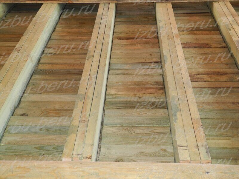 - Между лагами нужно заполнить пространство утеплителями и пароизоляционными материалами;
