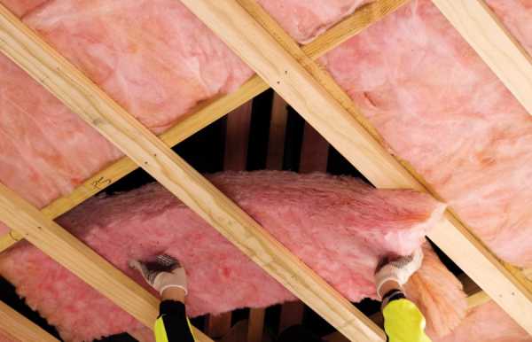 - После этого начинается установка теплоизоляции. Если это плитный или рулонный материал, его ширина должна соответствовать шагу потолочных балок. Когда ширины не хватает, приходится вставлять недостающие куски, что не очень удобно. Самое главное, чтобы межблочное пространство было плотно заполнено.