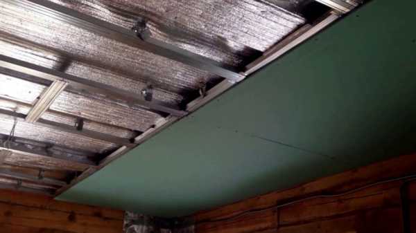 - Теплоизоляция и гидроизоляция в такой конструкции делается теми же материалами, как и говорилось раньше. Но есть и особенность установки такого потолка, перед креплением панелей, на стенах укладывается слой пакли, и наружные швы зашиваются досками.