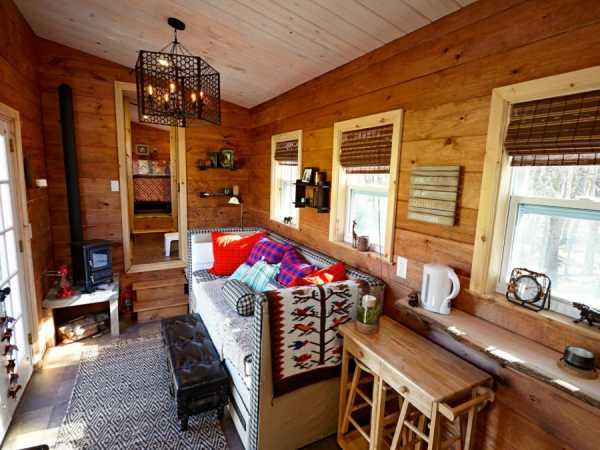 Панели МДФ, ламинированные под текстуру дерева, также подойдут к деревянным стенам. Вагонку из сосновой древесины легко выдать за ценную породу дерева, пропитав морилкой и вскрыв лаком. То же самое можно проделать с фанерой.