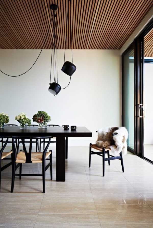 Потолок может стать самой необычной частью интерьера. Применение различных сочетаний материалов и элементов способно создать определённое настроение и направление стиля.