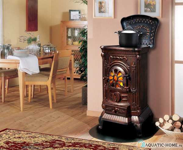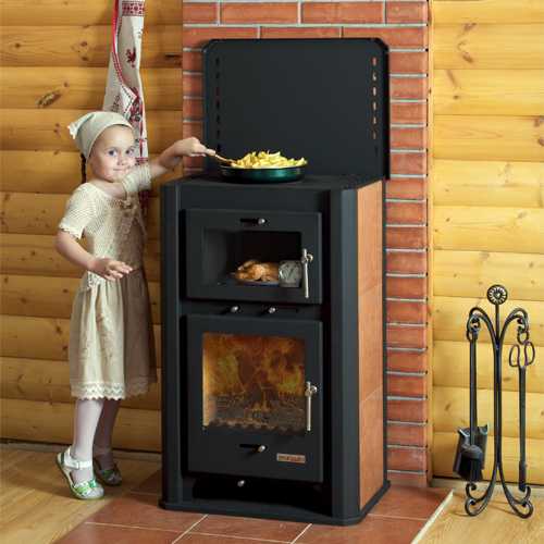 Она является идеальным вариантом для установки в загородном доме или на даче. Печь комплектуется варочной панелью из чугуна и духовкой, что дает возможность готовить пищу.