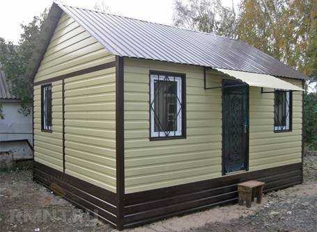 Сборный павильон — комбинированная конструкция, созданная из распространённых и доступных по цене материалов. Главную ценность представляют рамы и стойки — это мощные балки, сваренные или соединённые болтами, на которые можно нашить буквально любую отделку и дополнения (козырёк, лестницу, роллет и т. д.).