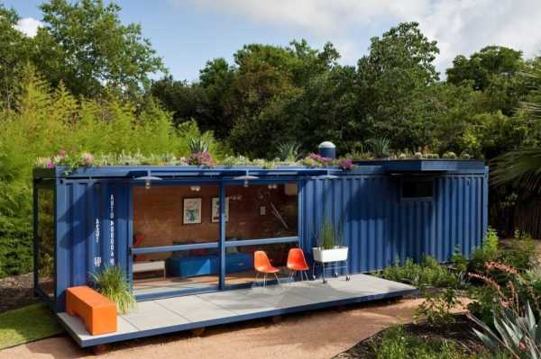 Сборка из обычных металлических контейнеров гораздо сложнее для самостоятельного строительства. Зато экономия гарантирована! Можно сделать небольшой дачный домик или место для отдыха в конце сада.