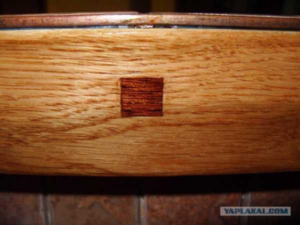 Закручиваю саморез на место и заклеиваю углубление квадратиком из дерева мербау.