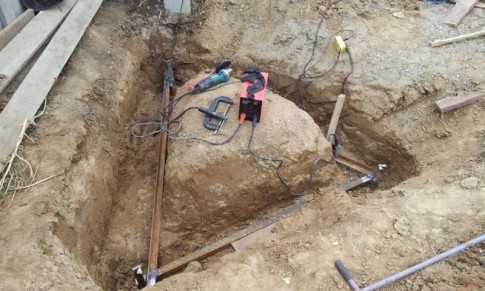 Для того, чтобы обеспечить необходимое сопротивление заземления, используются двухметровые вертикальные заземлители в количестве трех штук. Они изготавливаются из уголка 50 мм и вбиваются в землю так, чтобы их верхняя часть находилась примерно в половине метра от земли. Как и везде, заземлители соединяются между собой арматурой при помощи сварки. Заземлители располагаются между собой на расстоянии не менее 2-х метров. Чтобы сделать качественный контур, для него предварительно отрывается траншея. Она закапывается постепенно с утрамбовкой каждого слоя.