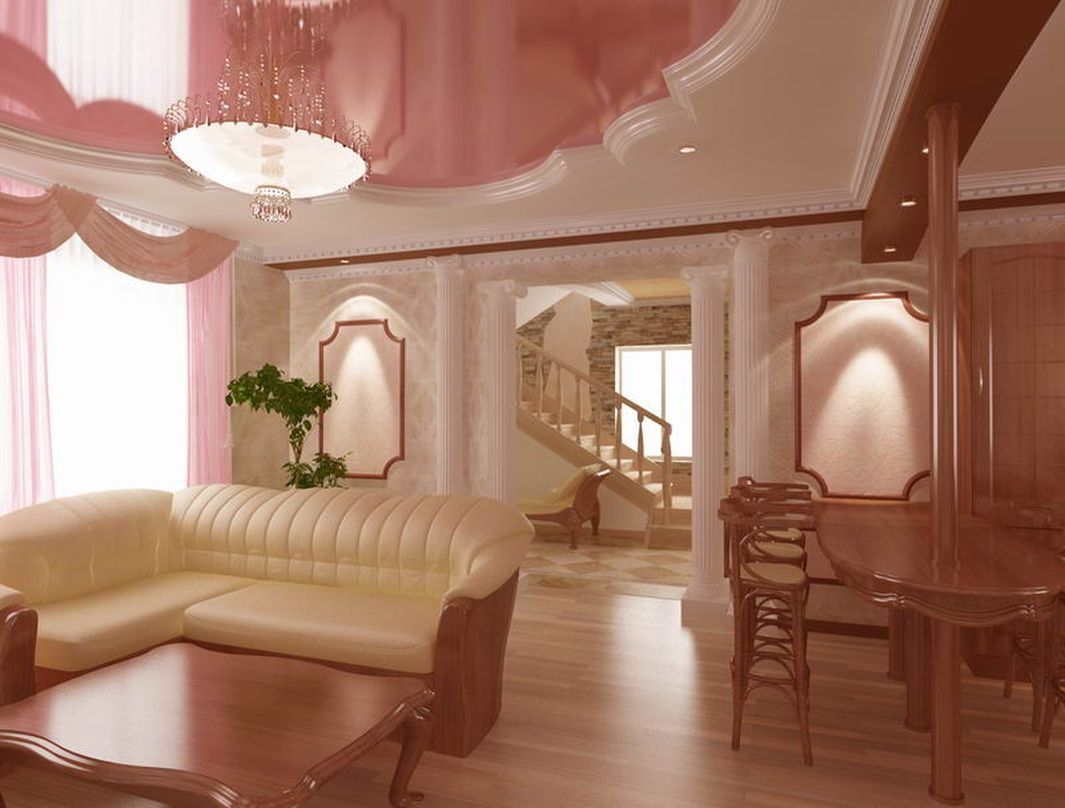 Потолок должен быть «вписан» в интерьер. В противном случае вместо радости и эстетического удовольствия будет создаваться гнетущее настроение.