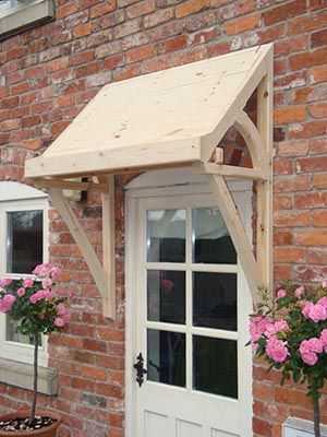 Ширина козырьков из натуральной древесины должна быть на 60-65 см больше ширины дверного проема, над которой он будет установлен. Чтобы вода не задерживалась над поверхностью, уклон должен составлять не менее двадцати градусов.