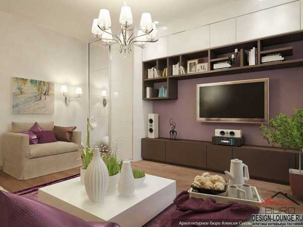 подсветка по всему фиолетовому периметру гостиной в компоненте с белым основным цветом