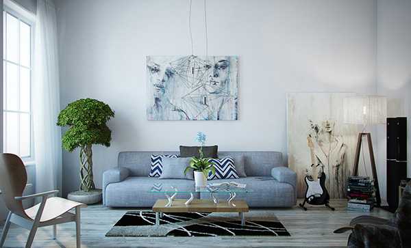 - если хочется простора, оптимальным вариантом будут светлые тона; белый, светло-бежевый, светло-серый визуально расширяют пространство; когда в комнате много таких оттенков, она кажется больше и светлее; даже шторы стоит выбрать максимально светлые или совсем прозрачные – это сделает композицию еще легче;