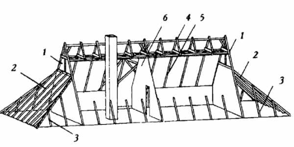 Конструкция вальмовой кровли формируется благодаря следующим элементам: