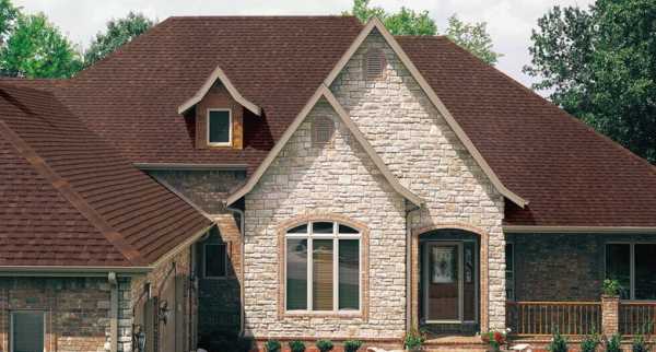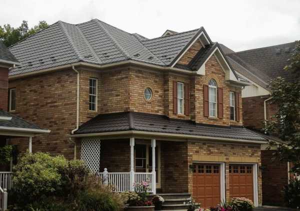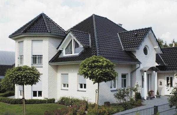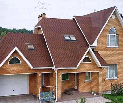 Колоритная Ондувилла под коричневую черепицу эффектно завершает образ дома в классическом стиле.