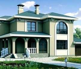 Зачастую к одному из скатов классического варианта вальмовой крыши встраивают конструкцию эркера – полукруглой пристройки, позволяющей значительно увеличить объем и освещенность главного зала в доме. Здания с эркером даже в одноэтажном исполнении выглядят намного эффектнее обычного решения. Чаще всего вальмовый скат здания переходит в конструкцию с эркером. Особенно удачным выглядит дизайн одноэтажного дома, если первый этаж основной постройки находится выше входа с эркером.