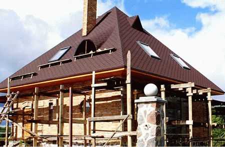 Четырехскатный каркас можно покрывать любым кровельным материалом, но строители предпочитают использовать для обозначенных целей мягкие по текстуре продукты.