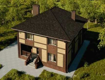 В таких условиях от каркаса кровли требовалось с помощью широкого свеса обеспечить большую площадь затененного пространства над террасой или входным крыльцом. Чтобы каркас обладал высокой устойчивостью и прочностью, скаты нужно было выполнять симметричными, с равномерно распределенной нагрузкой по всей коробке здания.