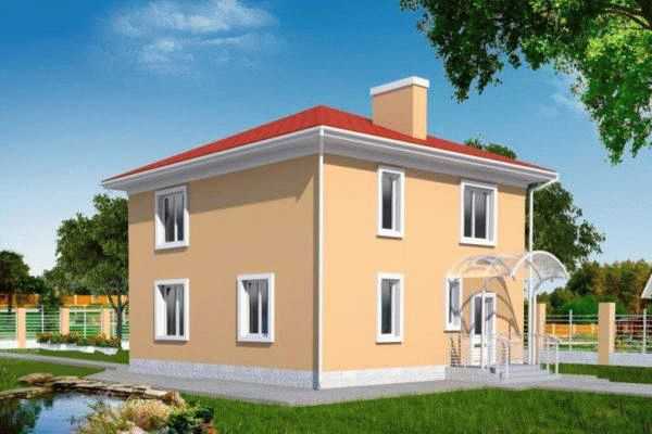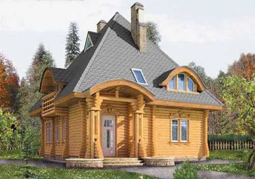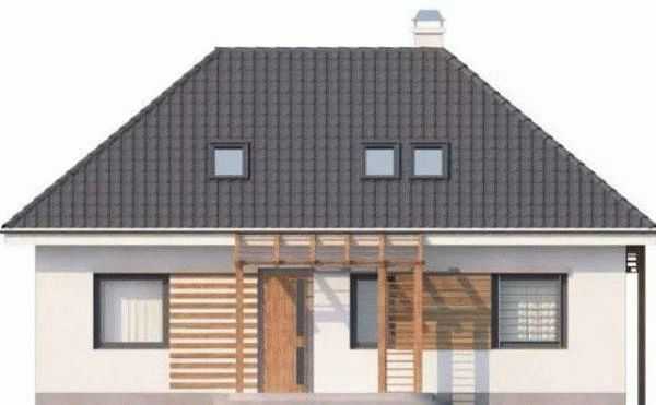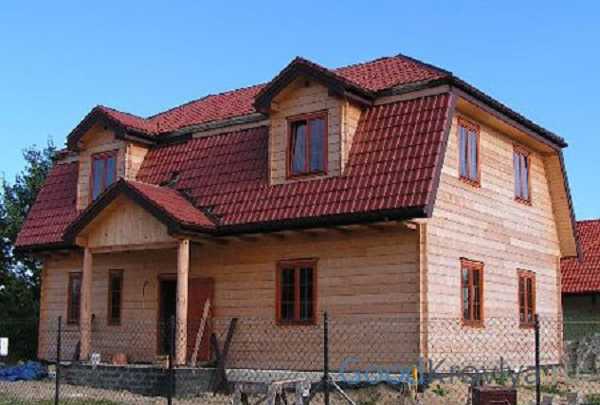 Дом получается практически квадратной формы с очень высокой крышей. Обычно рядом нет ни высоких деревьев, ни крутых склонов холмов или гор, способных защитить фасад и крышу от сильных порывов ветра в невыгодном для постройки направлении. Но благодаря применению вальмовой конструкции каркас получает достаточный запас прочности и устойчивости, сохраняя свои размеры и высоту. Высокая посадка кровли дает для одноэтажного дома еще одно помещение в виде мансарды.