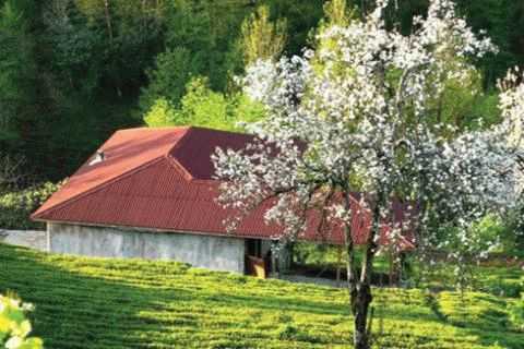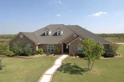 Вальмовая кровля из красного Ондулина стала интересным акцентом в архитектуре частного коттеджа в стиле кантри, построенного в Турции.