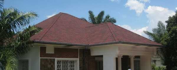 В проекте дома, построенного в Бурунди, предусмотрены вальмовые крыши из Ондувиллы над основным зданием и крыльцом.